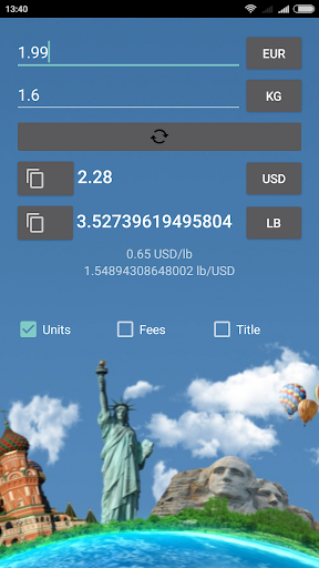 1 This application helping to convert foreign prices and units of measurements to comfortable domestic units and price representation.