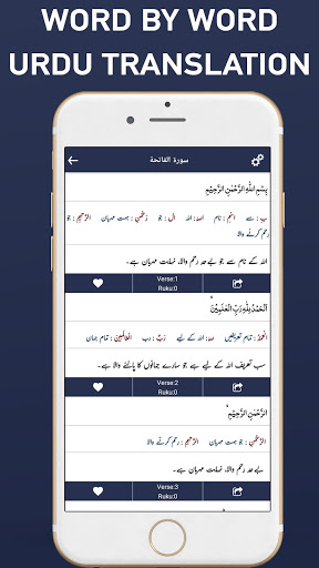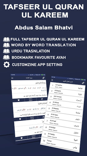 By using this app user can easily understand quran, Read Quran, book mark ayah, can easily switch to Dark Mode, Night Mode and default mode. User can easily select different themes, fonts families and fonts sizes for Quran words and its translation. There are 3 different modes available in our app simple mode (Mushaf Mode Only Arabic), Arabic and translation mode (Which also include word by word translation), and Tafseer mode.