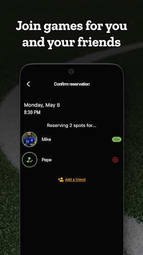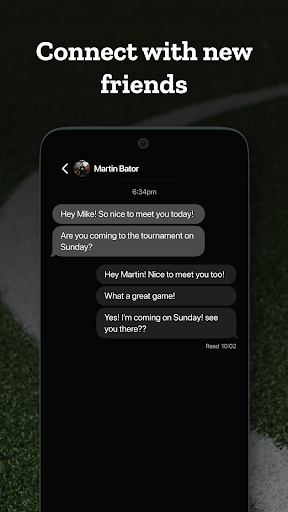 Weekly game schedule, times and availability, location / field map, messages, add friends, or pay online.