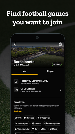 CeleBreak organizes lots of friendly games each day in your city, no need to know people beforehand to play or to commit to playing every week. Here you can play whenever and wherever you want.