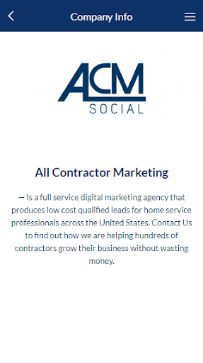 This app allows heating and air conditioning technicians to submit photos from the field to be used in their companies Social Media Campaigns. The photos and descriptions are sent to All Contractor Marketing and we then edit the photo if needed and write professional copy and then post the photo and the copy to the companies social media account. The app allows the basic information to be submitted from the technician (name and company name) and then it allows a brief description and a photo to be submitted.