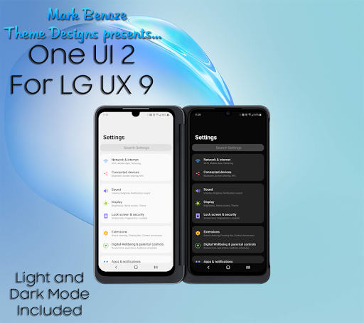 This is OneUI 2, an LG Home theme for your LG G8X, V50 (Android 10) UX 9. This theme is a premium quality theme like what you have come to expect. This theme supports both light and dark mode all in one. To activate one or the other simply go into settings, display and toggle night mode on or off. For best results after doing so reboot as your notifications may be impacted by this. This theme also supports adaptive icons. I recommend choosing "round" which gives you that nice look as show in the screenshots.
