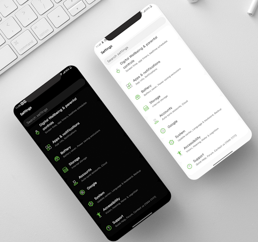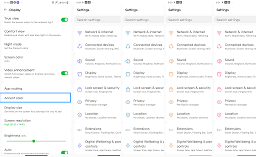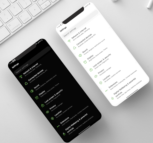 Theme design allows you to change the accent color of Settings, SystemUI according to the color you choose in Settings / Display / Accent color (Some phones like G7, V40 currently don't have this option)