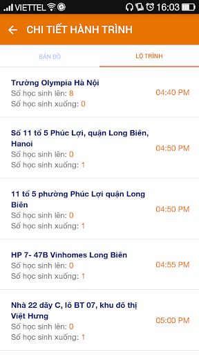 - Dữ liệu về giáo viên giám sát và tài xế.