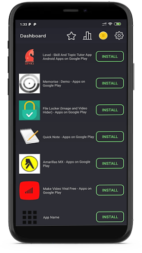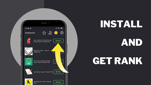 Your app will be displayed in this app, which will be installed by other users to get balance which intern helps them to rank on list and vice versa.
