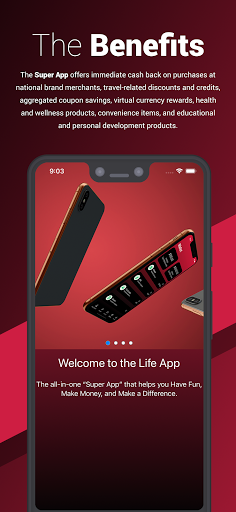 The all-in-one Life App is a digital platform with a range of offerings and benefits which include travel-related discounts and credits, immediate cash back on purchases at national-brand merchants, aggregated coupon savings, virtual currency rewards, health and wellness products, convenience items, and educational and personal development products.