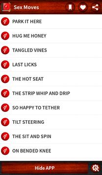 Features -------------- - Fully Hidden , App can open through dial pad (default : *#143# ) - 500 Sex Positions - Colour full graphics - Bookmark positions - List of favourite positions - Step by step instruction - Simple User Interface
