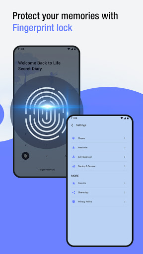 📘 Set a pin and fingerprint safe lock to keep your secrets private.
