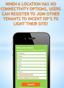 In addition to delivering connectivity to where providers may already be lit, when users enter an address and find that there are not enough providers (or none at all), Light My Site will aggregate the user requests for connectivity and build a business case for the ISPs to Light that location. When multiple tenants communicating as one collective within an office building request high capacity connectivity from Internet providers, it is a much more attractive business case for these providers to Light the location, than with one tenant requesting service alone. Light My Site is an easy to use platform that can build the business case based on multiple users registering (without obligation!), where they are located, and how much bandwidth they need with an estimate of their monthly budget. With that information supplied, Light My Site does the rest with all the available ISP’s and delivers back the most cost efficient provider to the building!