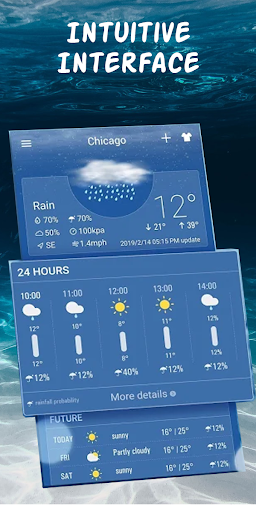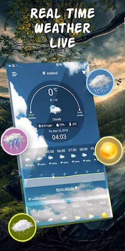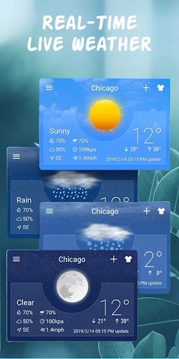 Live weather app offers detailed weather forecast, including weather underground, the current temperature in Celsius or Fahrenheit, rain chance, snow chance, wind force and direction, humidity, pressure, sunrise and sunset time, and moon phrases. Also you can customize your weather channel: set Temperature Units,°F or °C, set wind and pressure units, set a weather widget with clock in your home screen.