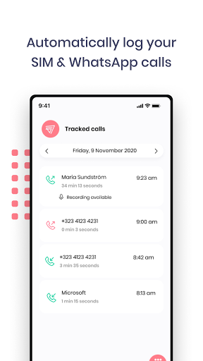 - App running in background - no need to dial inside the app to track calls automatically