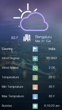 by just single touch. This application gives you information about humidity and wind positions Temperature updates are also displayed in Celsius & Fahrenheit of measurement.