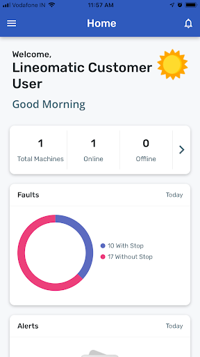 With this app, customer can log in his account to see his machine status. He can monitor his different machines with a single login and can also fetch the reports as per the requirements.