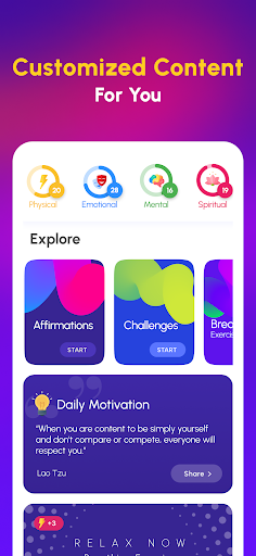 Mor also has a challenge feature that allows you to set goals for yourself and try to achieve them. For example, you can set goals such as exercising a certain number of times per week or doing regular breathing exercises and challenge yourself to achieve them. As the challenges get more difficult, you will strive to be better than your biggest rival, yourself. This can help you set new goals and continue your journey, increasing your self-confidence.