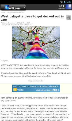 Experience the brand new WLFI-TV 18 app. Get more news, more weather and more video. It's everything you love about News Channel 18 right at your fingertips. WLFI-TV 18 has the latest local news, sports, weather, bonus video and living green stories from West Lafayette, Indiana. Features: - Navigate easily through local news and information that's important to you - Stay informed of breaking news with News Channel 18 alerts - View local news videos embedded within stories or at full screen - Understand how weather will affect you with local forecasts, radar, maps and video - Stay up-to-date on school closings and severe weather - Help shape local coverage by submitting photos and news tips through report It - Easily share interesting articles via e-mail, facebook R) and Twitter(TM)