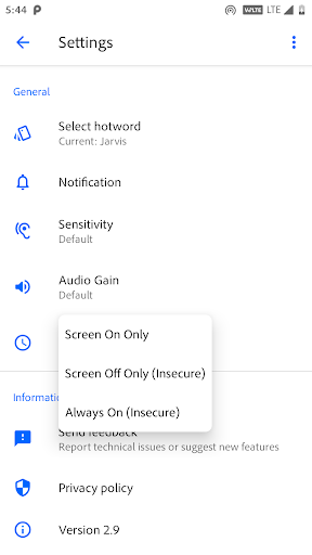 By default, Hotword Changer will recognize you when you say like "Jarvis" etc. whenever the screen is on or your device is charging.