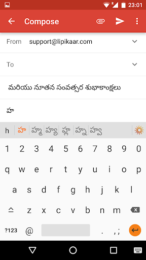 Send emails, post Facebook updates & send messages on Whatsapp in Telugu(తెలుగు) using Lipikaar Telugu Keyboard - an English to Telugu typing keyboard that works with all apps.