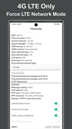 Force 4G LTE Only will help to change network to 4G/3G/2G and stay in chosen network. it can opens a secret menu where advanced network configurations can be selected.