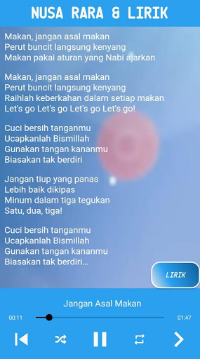 Kumpulan Lirik Lagu Nusa Rara adalah aplikasi kumpulan lagu anak muslim Nusa Rara yang dilengkapi dengan lirik.