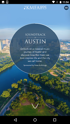 The KMFA mobile app immerses you in handcrafted classical music experiences. You can livestream locally curated music and learn more about the dynamic hosts, programs, and events, and the “KMFA Soundtrack of Austin” allows you to take a classical music tour around Austin anytime you open up your app. Hear and feel the connection between both iconic landmarks and local favorites with curated classical music. Like an audio tour through a museum, the app tells you about the significance of each location and why the selected piece fits that location. KMFA created the Soundtrack of Austin to show how beloved music inspires life in Austin.