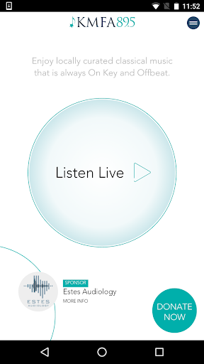 KMFA 89.5 is an independent public classical radio station. KMFA serves approximately 100,000 listeners each week and features both locally produced shows like Classical Austin, Icons of Broadway, and Classical Guitar Alive, as well as nationally distributed programming from Public Radio International, American Public Media, and National Public Radio.