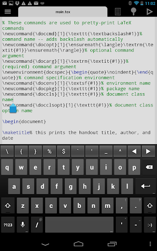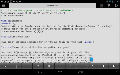 Writing paper on your Android device! TeX Writer lets you write, compile and preview TeX documents right on your tablet or smartphone, and no internet connection is required. Editing TeX is now super easy with the assistant keybar. Comparing to other text editors, it saves you a lot of time in typing LaTeX commands.
