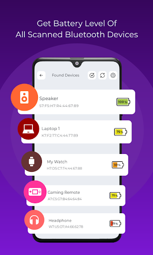 - Checks the remaining battery level of the connected Bluetooth devices to the smartphone.