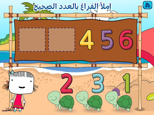 يقدّم التطبيق ألعاباً مختلفة لكتابة وتمميز الأرقام والعد والجمع والطرح للعشرة بطريقة بسيطة ومسلية. كما ويعزز التطبيق هذه المفاهيم بألعاب التسلسل والتطابق.