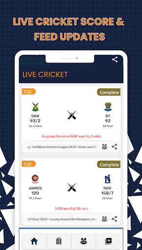 Get In time, accurate and fast notified for every movement from an ongoing match or breaking news from your favourite cricket team around the world.