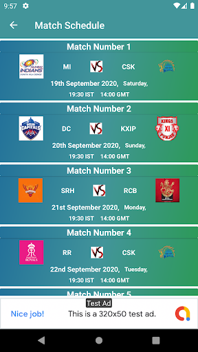 Schedule for all matches of IPL
