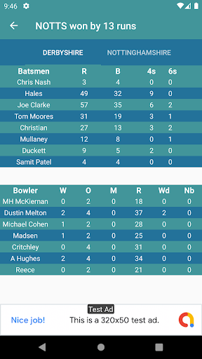 Scorecard for Live and Completed Matches