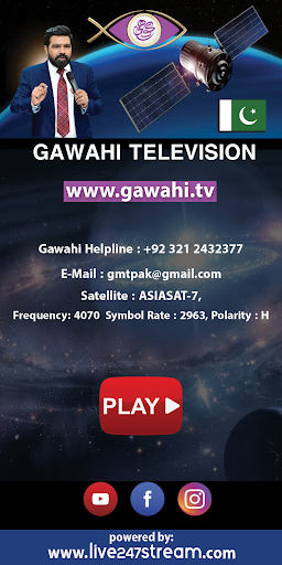 Gawahi is a SATELLITE TELEVISION STATION, communicating the Gospel of Jesus Christ through visual media. It was founded by Pastor Sarfraz William.