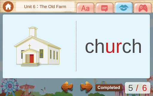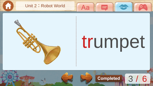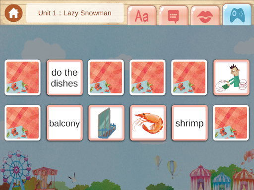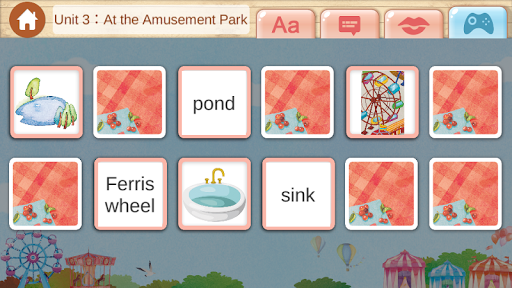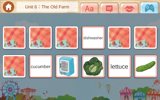 *Game: 點選文字和圖像配對的翻牌遊戲,來驗收學習過後的成果,會依冊別增加難度。