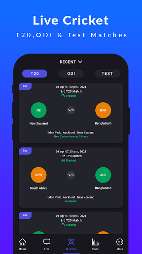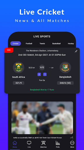 Live cricket scores and ball by ball updates that helps you stay close to the action.