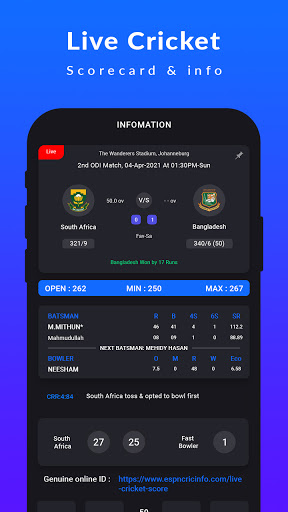 You can get various cricket match information like the score card, latest cricket news and cricket matches. It also covers an unbeatable coverage of cricket matches to their viewers all over the world.