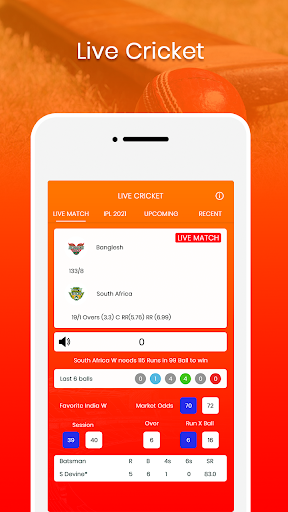 : Best App for Cricket Live Line & all cricket live matches score. This app provides you fast Live Cricket Score & Updates with accurate Market Odds and Session.