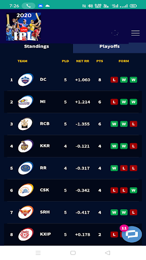IPL STANDINGS