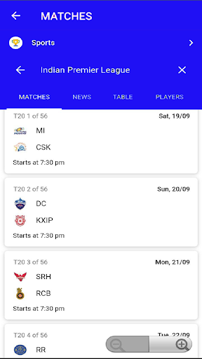 ✔ Full Match Stats (live score, news, statics, point table etc.)