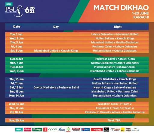 The 2021 season 6 begins with the first game between Quetta Gladiators v Karachi King in National Stadium Karachi on February 20, that will follow the opening ceremony which will be held on the same day.