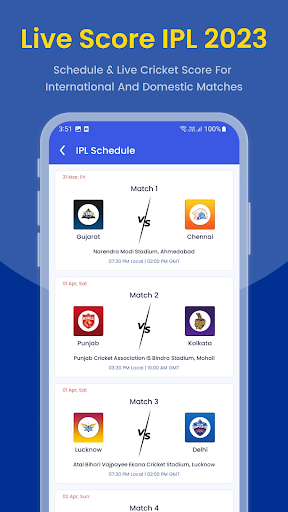 - To see the "Schedule For IPL 2023", open the application and click on schedule. One more thing you can also filter matches by team so that all the matches of your favorite team will be visible. Apart from this, you can also see the team schedule with the player list in the every team section.