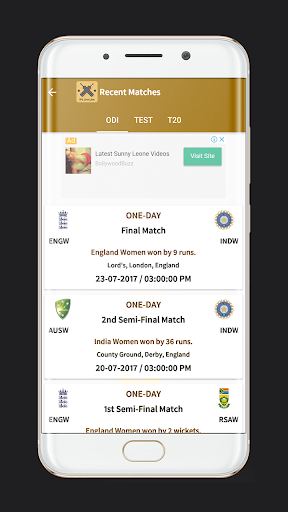 Cricket Live Score also shows ipl fixtures team wise. Means, you can check ipl schedules 2021 or matches of your favorite team. You can also read details and stats of your favorite ipl 2021 team. Cricket Score app contains full stats of every player details in profile.