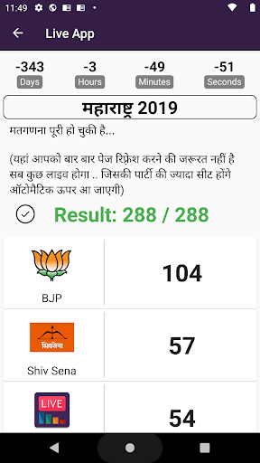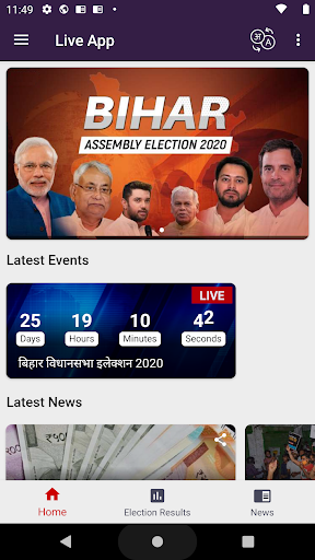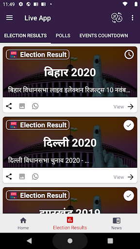 In this app you can see or check all India election result live like loksabha and state vidhansabha election result of 2020 and upcoming others election results.