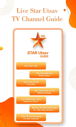 Start to learn about Star Utsav Channel Live TV today with our apps. You will know more about how to watch all Star Utsav TV movies online with best quality videos. We will help you to know all the serials, TV Shows, Programs Of Star Utsav TV Channel Live HD. Star Utsav has popular TV channels and serials if you are Hindi or Arabian country this app is suit for you. If you don't know how to use it just follow a simple step by step guide in this app. This app is friendly with new users that want to watch favorite channels such as Drama Series Channel at any time. Just try it by yourself and you will love it. Let's this app guide your way to use Star Utsav TV Channel.