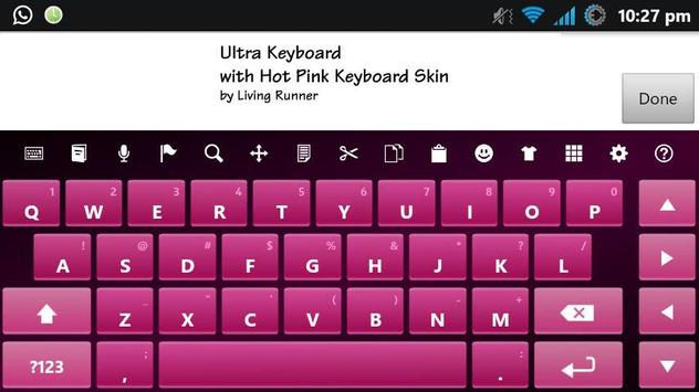 Welcome to the HOT series. HD Keyboard skin with dark, shocking pink key background. White key texts/labels. Dark pink background. Very elegant and girlie.