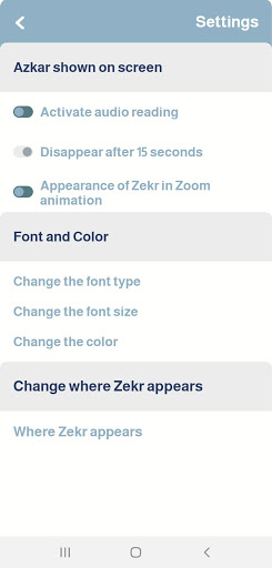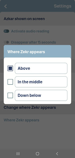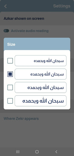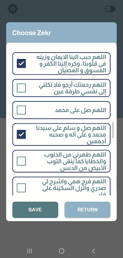 - Control the selection of the azkar that you want to appear on the mobile screen