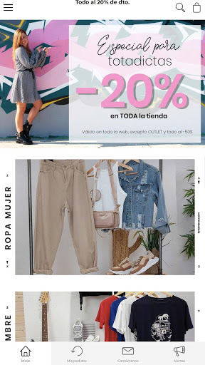 Por si fuera poco podrás beneficiarte de descuentos y promociones exclusivas solo activando las notificaciones push. No te perderás ninguna novedad y estarás al día en las últimas tendencias de ropa y complementos para mujer.
