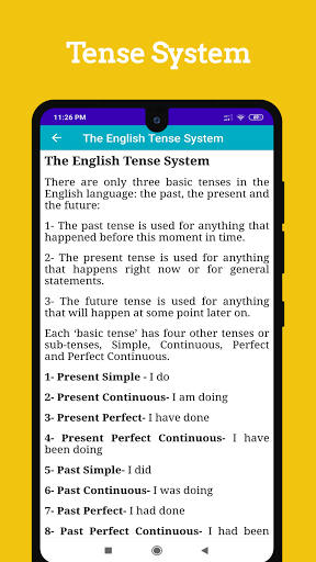 This English grammar app covers 100 popular grammar topics using simple explanations and many examples. All grammar topics are available for free. This English Grammar app is perfect for Beginner and Intermediate levels. This English Grammar learning app helps you improve your grammar skills on daily basis, teaching you English Grammar from a basic to advanced level.