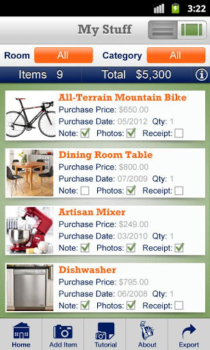 Download Home gallery app— the powerful home inventory app by Liberty Mutual for your Android smartphone.Liberty Mutual understands how much you value your personal property. We created Home Gallery app to help you quickly and easily build a virtual inventory of your belongings.With Home Gallery app, simply start snapping photos or scanning barcodes as you move through your rooms and assign details to each item right on your Android phone. Soon you’ll have a complete, accurate list of all your belongings, including their pictures and receipts. Everything is conveniently stored on your Android phone, and you can easily export your inventory via email as an attached file. Liberty Mutual respects your privacy and will not access this information With Home Gallery app, you can:● Add photos and details for up to three properties● Quickly take multiple photos of your belongings● Add item details or scan item barcode for images and descriptions● Capture an item by importing photos from your Android phone● Catalog each item by room and/or by category● Assign purchase price, purchase date, and/or add receipt to each item● Quickly browse a virtual gallery of your belongings● Export your inventory as a CSV file or PDF with images.Like most people, you’ve probably accumulated many possessions over the years. In the case of a loss or theft, having a home inventory is essential, whether you own a home or condo or simply rent.Home Gallery app from Liberty Mutual will lend simplicity to your organizing efforts and is available to all users, even if you are not currently a policyholder. Since 1912, Liberty Mutual has been helping people live safer, more secure lives. Home Gallery app is just one more way we help you protect the things that matter.
