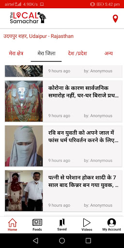 The Local Samachar provide Breaking News, Breaking Samachar, Live Hindi News, Live TV News, Area Samachar, Local Khabar. The local samachar specially focuses on South Rajasthan and Mewar vagad.