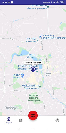 - поиск автоматизированных терминалов на карте города;